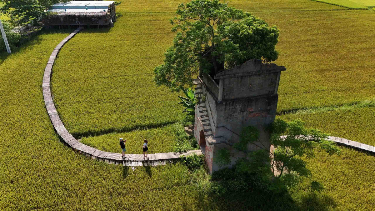 Farmstay Lò Gạch Cũ tọa lạc giữa cánh đồng lúa Duy Xuyên, nổi bật nhờ lò gạch cũ bỏ hoang gần 20 năm, nay trở thành điểm check-in độc đáo.