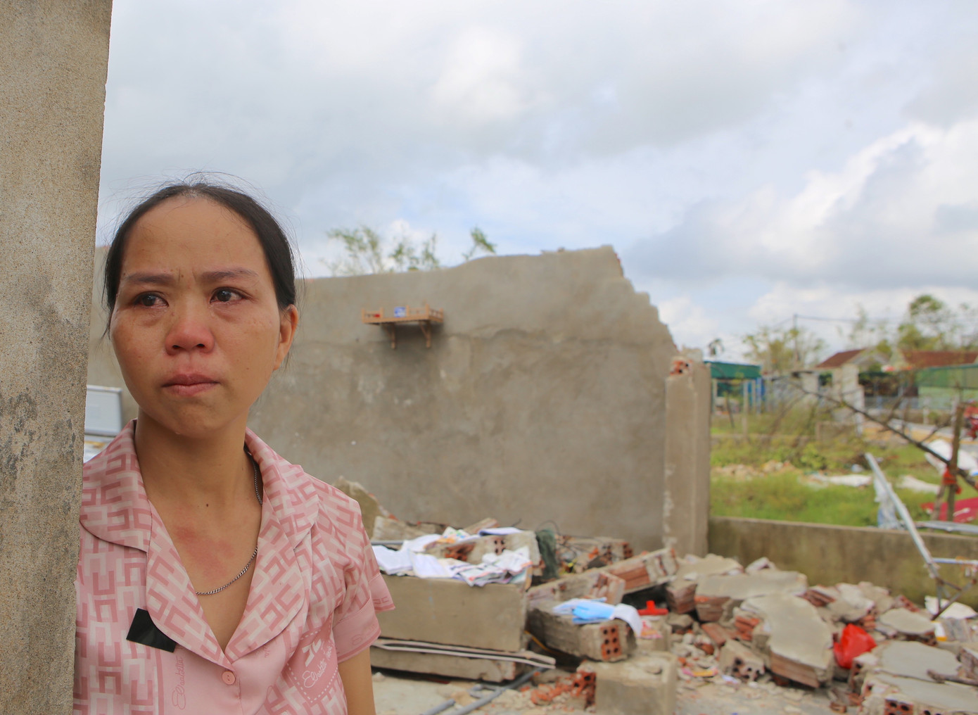 Khi bão đổ bộ vào đất liền, một cơn lốc xoáy hung hãn bất ngờ ập đến. Trở về nhà, cảnh tượng trước mắt khiến chị Hải chết lặng khi ngôi nhà đã bị san phẳng, mái tôn văng ra tận ngoài đồng, đồ đạc tan hoang, ngấm trong nước mưa nặng hạt.