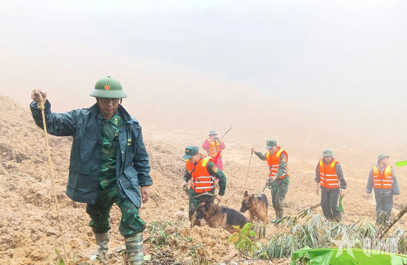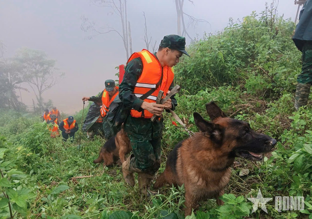 Chó nghiệp vụ tham gia tìm kiếm các nạn nhân mất tích do sạt lở đất ở xã Hùng Sơn (TP Đà Nẵng).