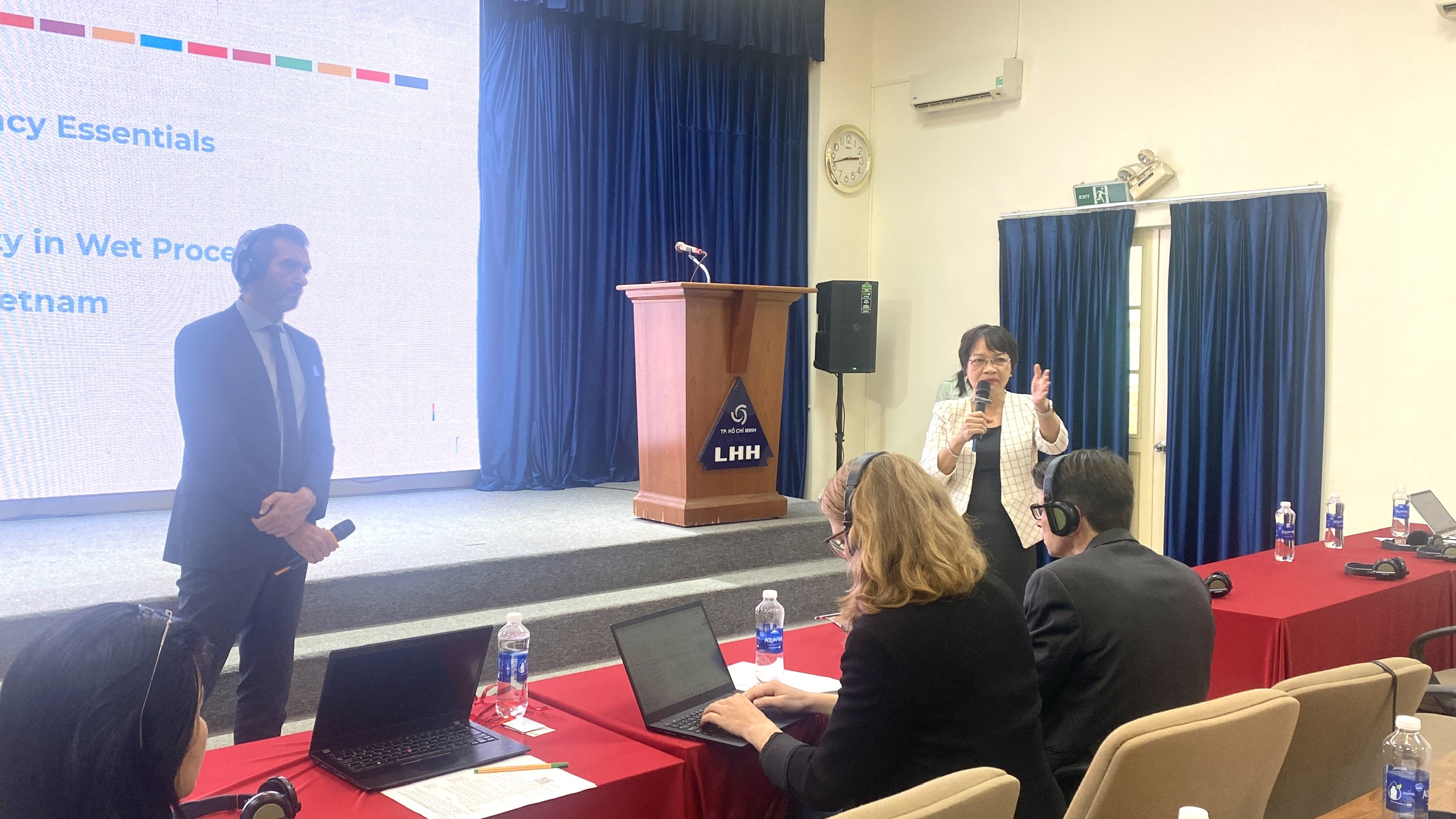 Theo bà Mai, dù Việt Nam đã có nhiều tiến bộ trong chính sách về môi trường và hóa chất, thực tế nhiều doanh nghiệp vẫn đối mặt thách thức: dữ liệu hóa chất chưa được số hóa đầy đủ, chuỗi cung ứng thiếu kết nối thông tin, doanh nghiệp nhỏ và vừa còn hạn chế nguồn lực công nghệ. Minh bạch hóa còn rời rạc giữa các công đoạn sợi – dệt – nhuộm – may.
