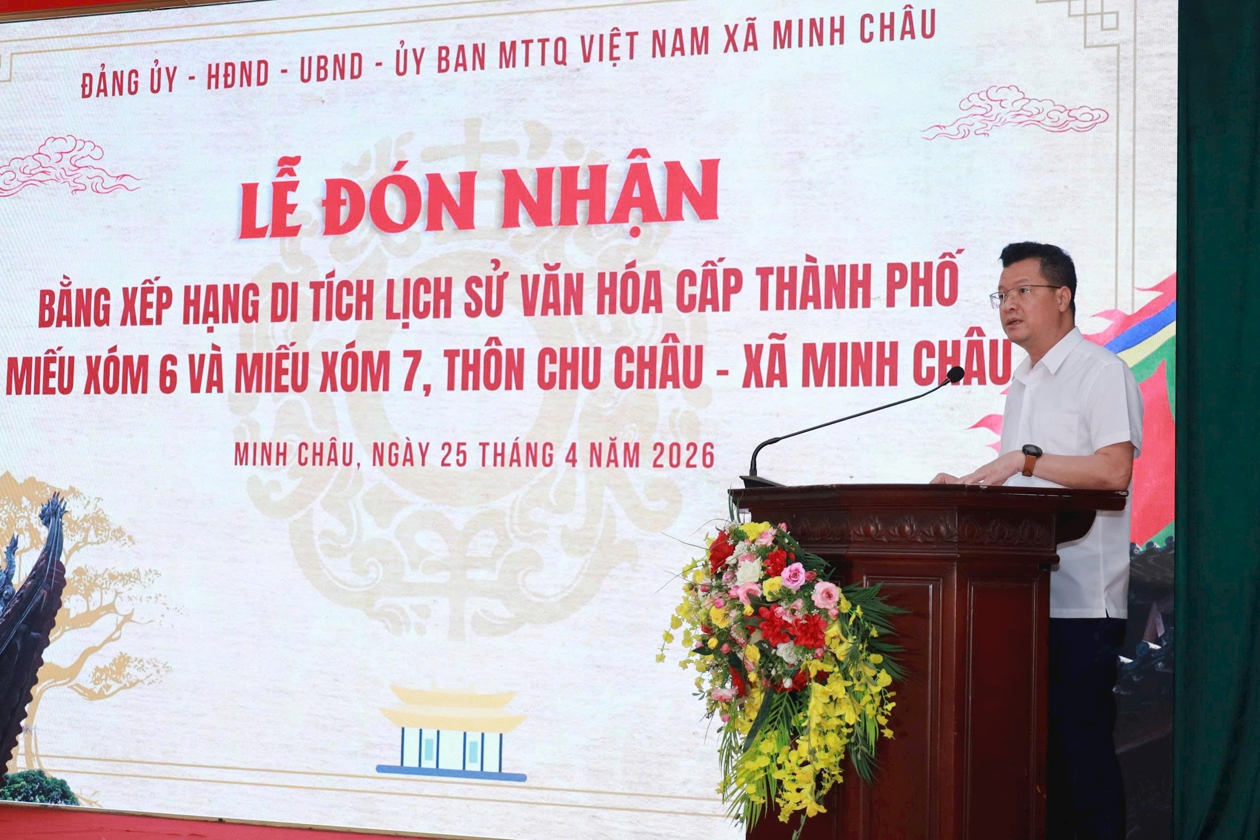 Phát biểu tại buổi lễ, Ủy viên Ban Thường vụ Đảng ủy, Phó Chủ tịch UBND xã Minh Châu Đinh Tuấn Anh khẳng định: Việc UBND thành phố Hà Nội chính thức xếp hạng hai di tích là sự ghi nhận xứng đáng với công lao gìn giữ của các thế hệ. Đây cũng là lời nhắc nhở thế hệ hôm nay phải có trách nhiệm hơn, cẩn trọng hơn trong việc bảo tồn và phát huy những giá trị quý báu đó. Việc hai ngôi miếu được công nhận là di tích lịch sử-văn hóa cấp thành phố không chỉ mang ý nghĩa tinh thần, mà còn có giá trị pháp lý rất thiết thực. Từ đây, Miếu xóm 6 và Miếu xóm 7 chính thức được bảo vệ bằng các thiết chế pháp luật, được đưa vào danh mục di sản được ưu tiên đầu tư, tôn tạo theo quy định của pháp luật.