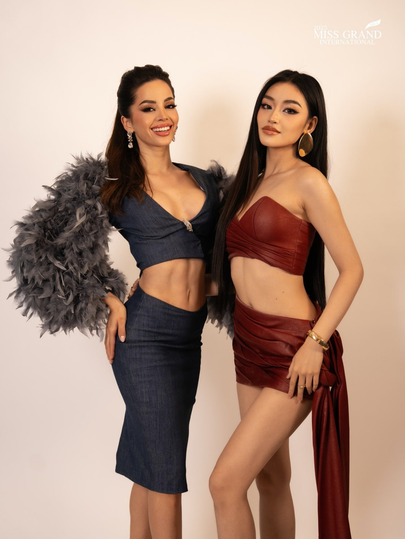 Trang phục ngày đầu của Yến Nhi tại Miss Grand International 2025. Cô đứng cạnh đại diện đến từ Argentina, và khoe hình thể đẹp khi đứng cạnh các đại diện khác.