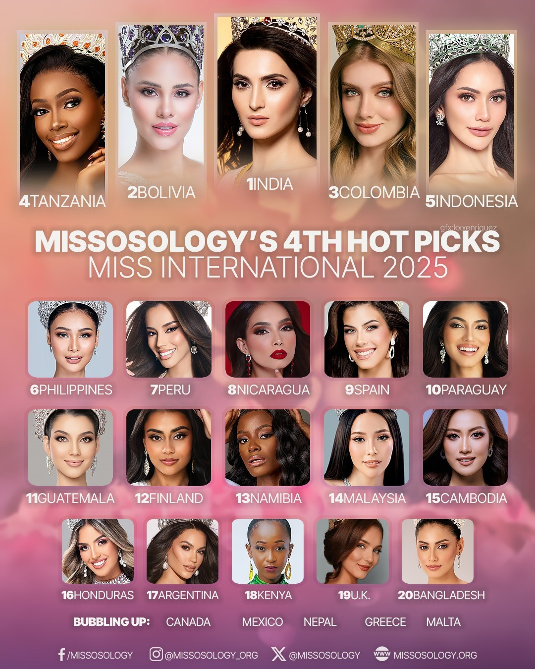 Tại các BXH trước đó của chuyên trang này dành cho cuộc thi Miss International 2025, Kiều Duy chỉ có mặt duy nhất ở BXH dự đoán lần thứ 5, tại vị trí số 16. Đây chỉ là BXH dự đoán của một chuyên trang, và Miss International luôn là đấu trường nhan sắc khó dự đoán nhất. Năm ngoái, Missosology cũng không dự đoán được Hoa hậu Thanh Thủy sẽ giành vương miện Miss International 2024.