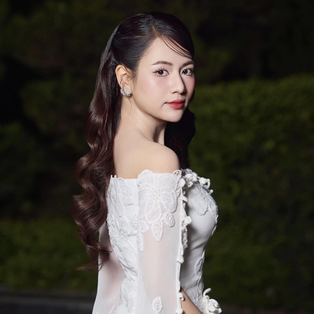 Trong một hình ảnh, Việt Hoa không ngại thả dáng với đầm trắng lộ vai thon yêu kiều.