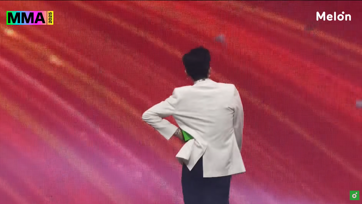 Sau khi cúi chào khán giả, máy quay bắt trọn khoảnh khắc G-Dragon "chống nạnh" đi vào chuẩn meme - phong cách "ngoại GD" được fan đặt cho.
