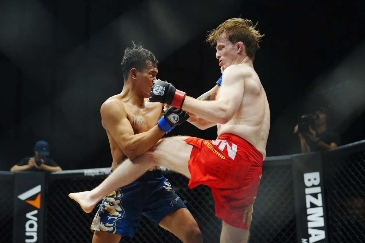 Sự già giơ của VĐV gần 40 tuổi giúp Trần Trọng Kim giành chiến thắng bằng knockout với cú đá chuẩn xác trong hiệp 2.