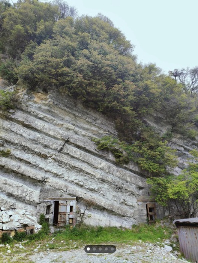 Những bức ảnh đã hé lộ một phần lịch sử bị lãng quên của khu vực. Bức ảnh đầu tiên cho thấy một vách đá gồ ghề với các đường kẻ thẳng đều đặn, dấu hiệu rõ ràng của hoạt động khai thác mỏ trong quá khứ. Trên vách đá là một cánh cửa gỗ cũ kỹ, mục nát theo thời gian. Cách đó không xa, khung kim loại rỉ sét của một cánh cửa khác vẫn còn sót lại.