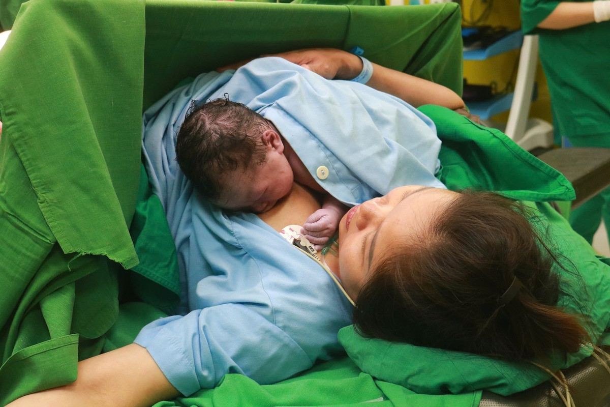 Bé ra đời được da kề da ngay trên ngực mẹ - Ảnh BVCC