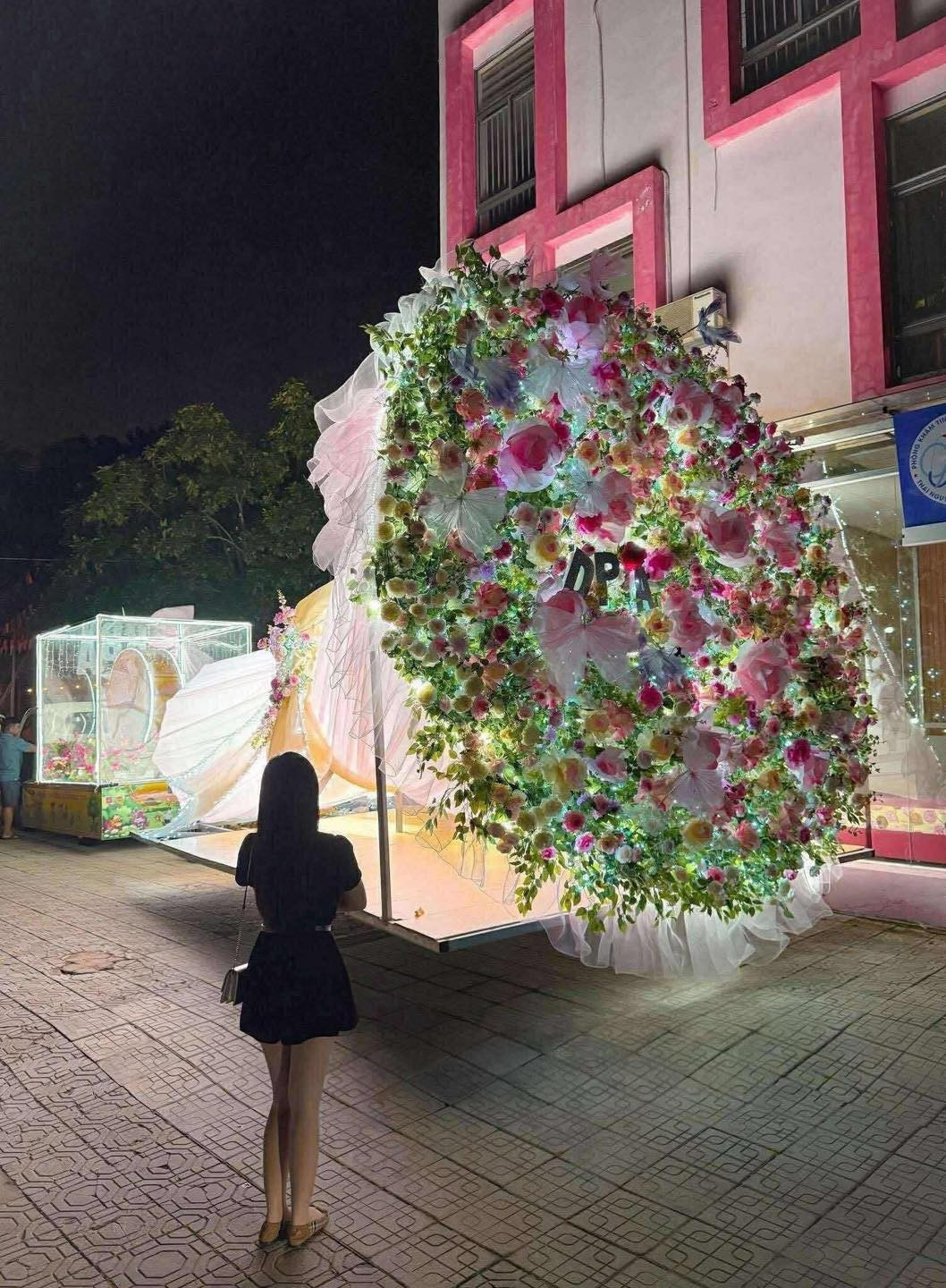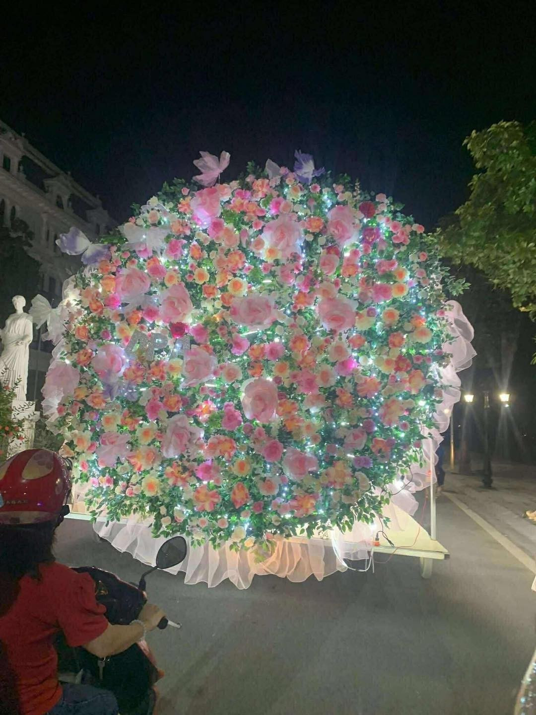 Mô hình bó hoa khổng lồ khiến nhiều người không thể rời mắt. Nhiều bạn trẻ đã rủ nhau đến để check-in với bó hoa khổng lồ. (Ảnh: Tổng hợp)