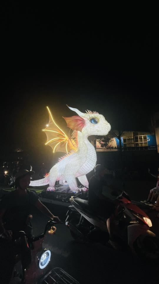 Được biết, mô hình này có chiều dài 5 mét, chiều rộng 2 mét và chiều cao: 4,2 mét. Mô hình Rồng con này là sự kết hợp giữa yếu tố truyền thống và hiện đại, nhằm lan tỏa giá trị văn hóa một cách sinh động, tươi mới. (Ảnh: Tổng hợp)