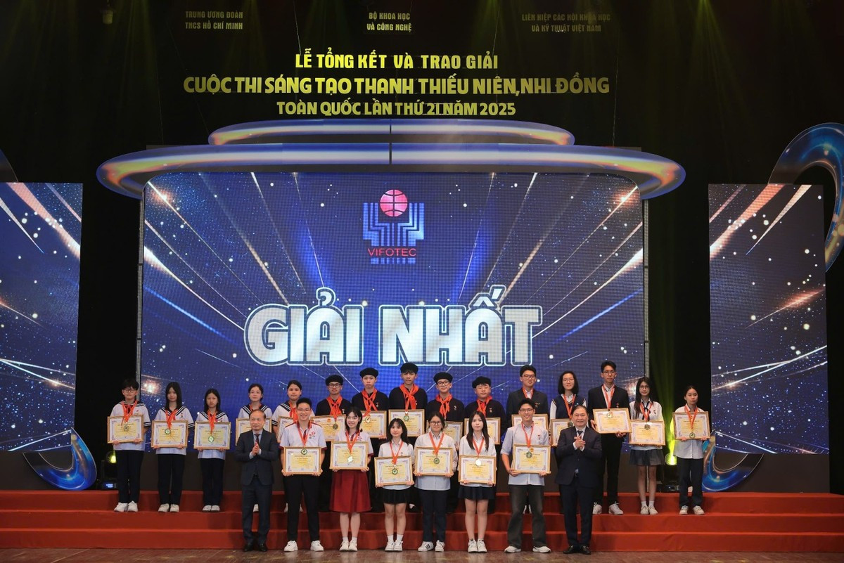 Các tác giả, nhóm tác giả được trao Giải Nhất tại lễ trao giải Cuộc thi sáng tạo thanh thiếu niên, nhi đồng toàn quốc lần thứ 21, năm 2025.