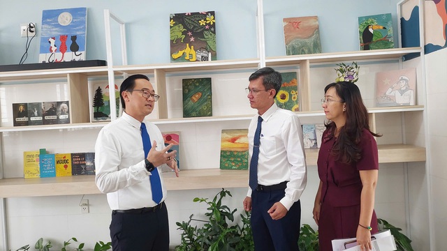 TS.BS Phan Minh Hoàng (trái) chia sẻ lợi ích của mô hình mới với lãnh đạo UBND phường Chánh Hưng.