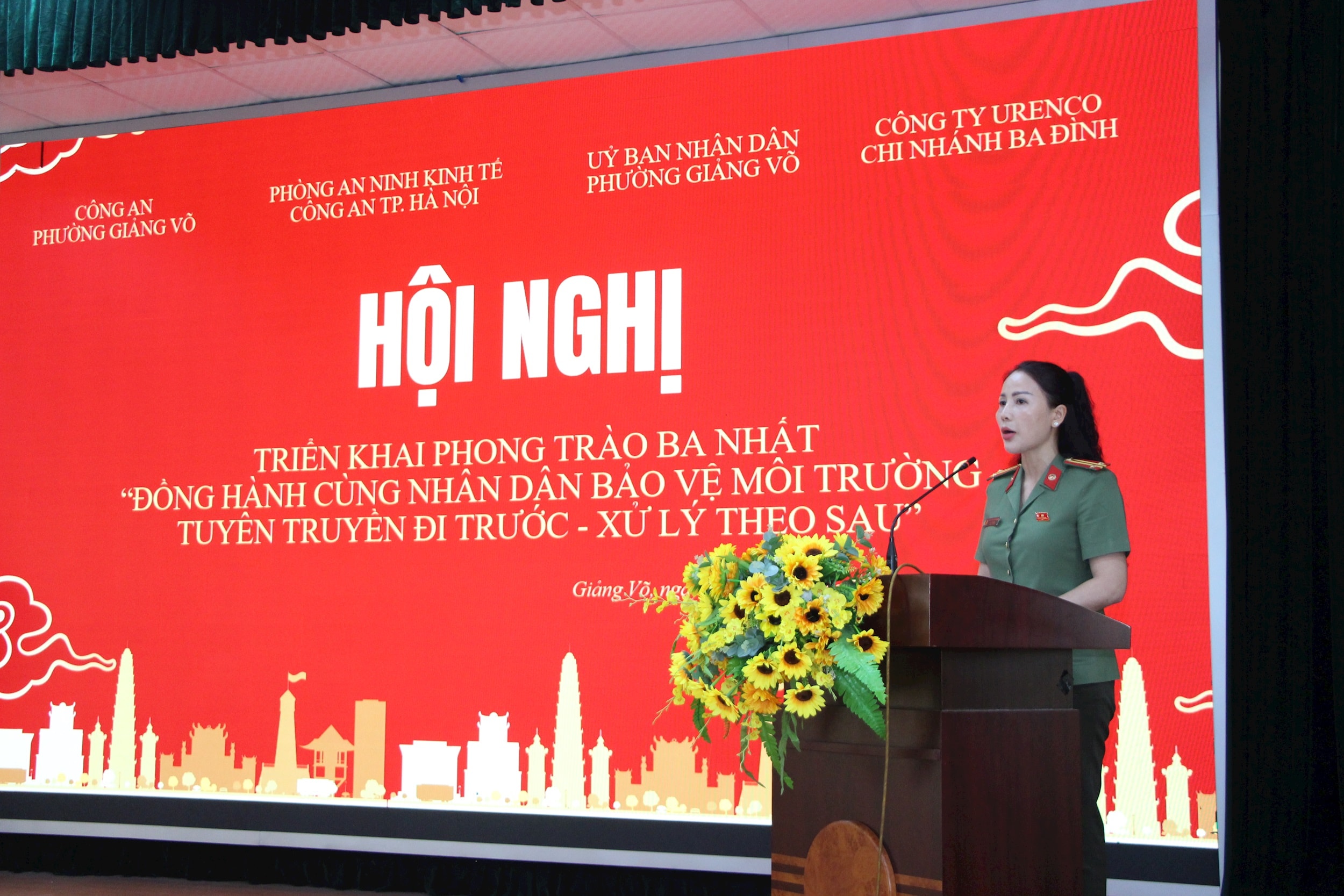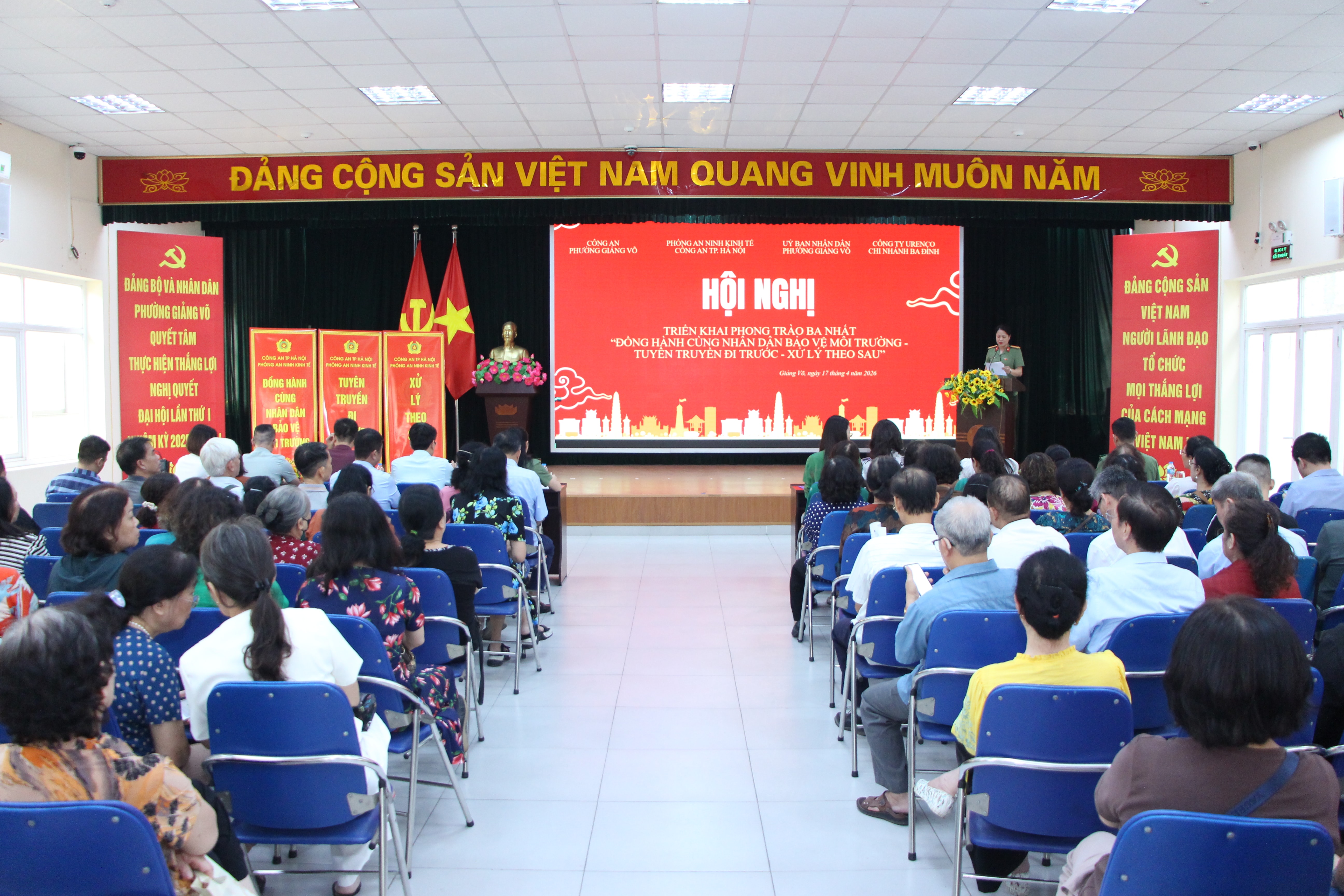 Trên cơ sở đó, Phòng An ninh Kinh tế đã nghiên cứu phối hợp với UBND phường Giảng Võ, Công an Phường Giảng Võ, Công ty TNHH MTV Môi trường Đô thị Hà Nội phát động phong trào “Ba nhất: Đồng hành cùng nhân dân bảo vệ môi trường - Tuyên truyền đi trước - Xử lý theo sau” trên địa bàn phường Giảng Võ để phòng ngừa, phát hiện, đấu tranh, xử lý hiệu quả các vấn đề phức tạp liên quan đến công tác an ninh trên lĩnh vực môi trường, góp phần bảo đảm công tác vệ sinh môi trường trên địa bàn phường.
