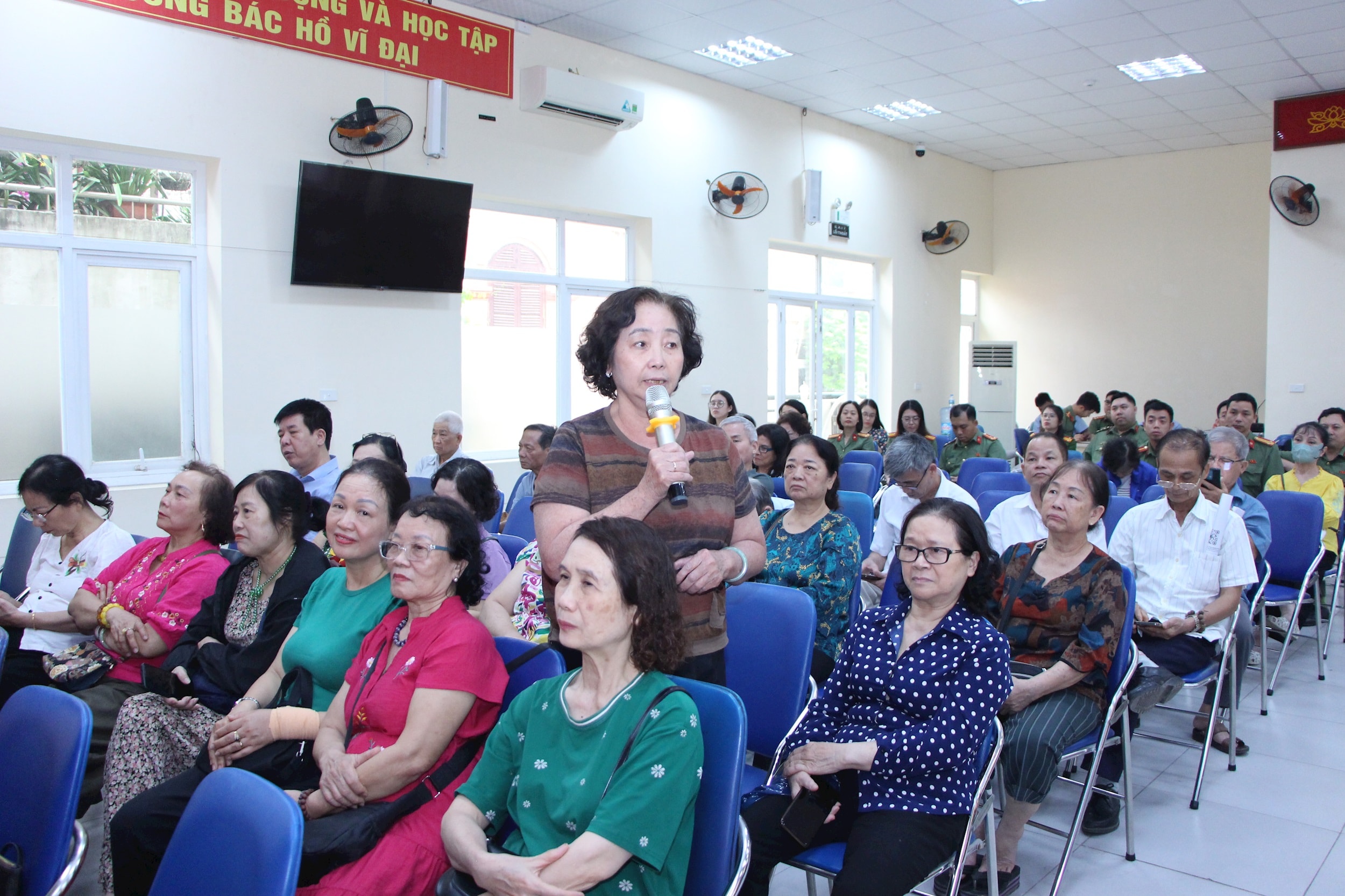 Trung tá Hoàng Thị Bích Hạnh, cán bộ Phòng An ninh Kinh tế (Công an thành phố Hà Nội) phát động thực hiện phong trào. Ảnh: TT