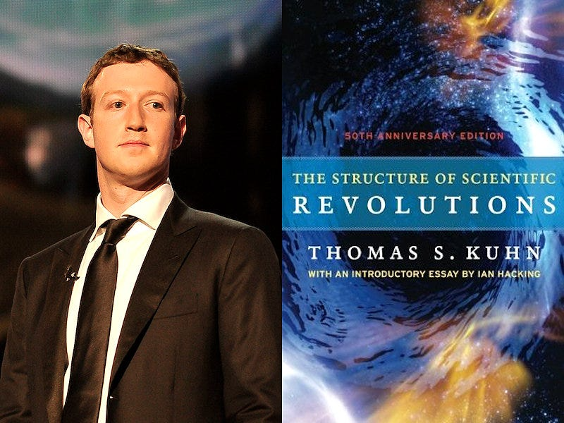 Mark Zuckerberg từng chia sẻ mong muốn mọi người đọc cuốn sách triết học mang tính bước ngoặt này từ những năm 1960 của Thomas Kuhn. Cuốn sách "Cấu trúc của các cuộc cách mạng khoa học" là một trong những cuốn sách học thuật được trích dẫn nhiều nhất mọi thời đại, đưa tác giả trở thành "nhà triết học khoa học có ảnh hưởng nhất" trong thế kỷ 20.