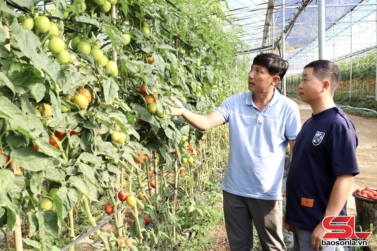 Thành viên HTX chia sẻ kinh nghiệm chăm sóc cây cà chua.