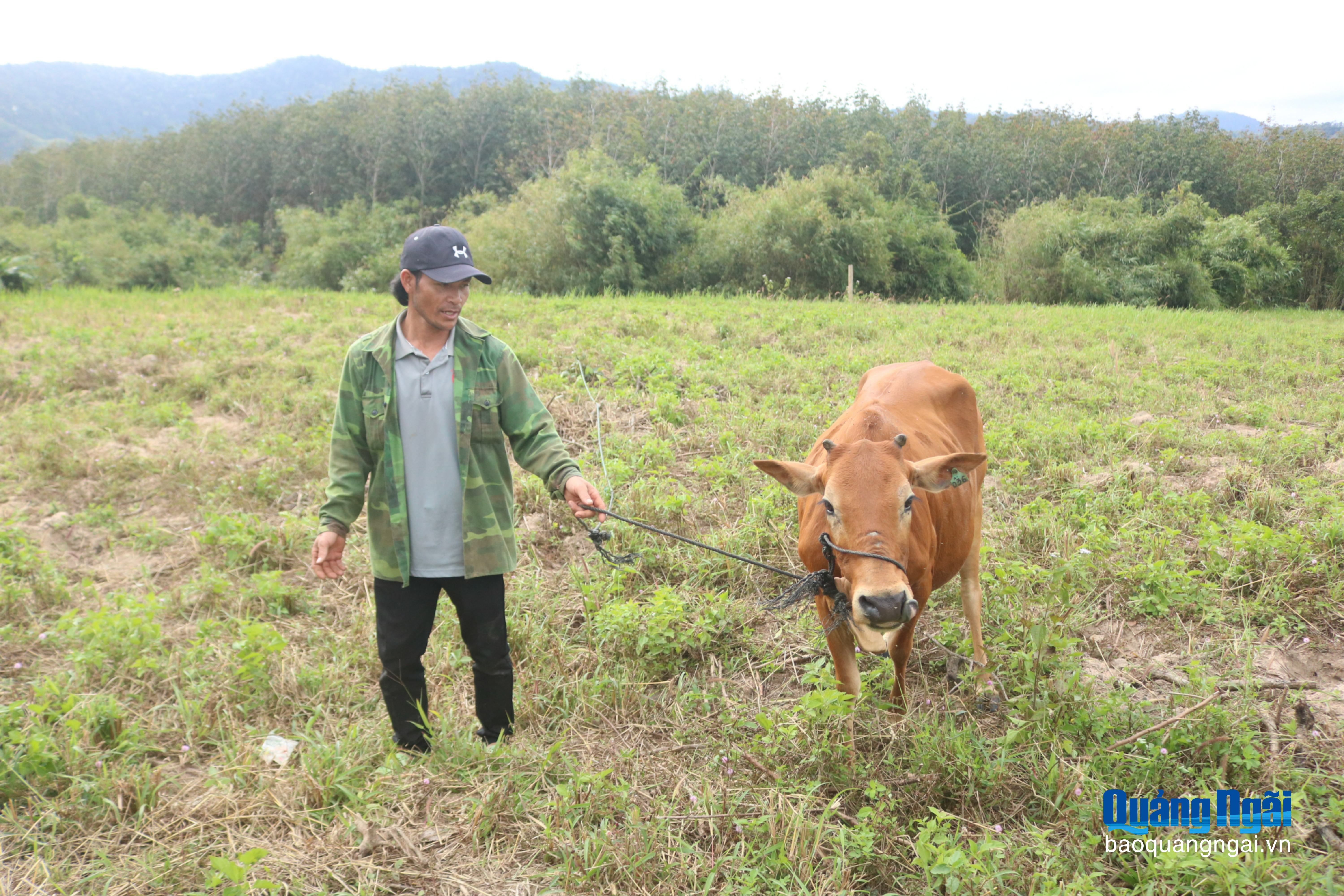 Tương tự, đầu năm 2025, gia đình anh Hồ Văn Nhau (36 tuổi), dân tộc Cor, ở thôn 7, cũng được hỗ trợ một con bò giống sinh sản từ Dự án 2. Nhờ chăm sóc cẩn thận, phòng trừ dịch bệnh đầy đủ, bò sinh trưởng tốt, đã đẻ được một bê con.