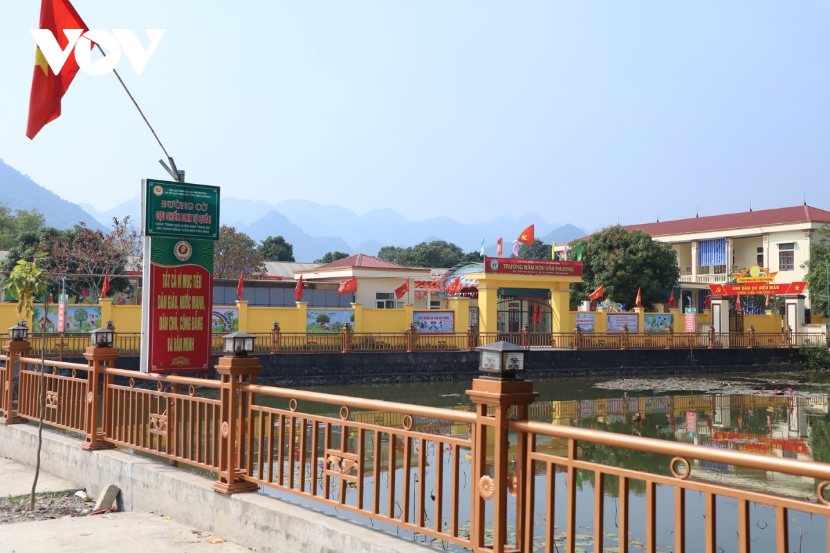 Con đường vào UBND xã Cúc Phương uốn lượn giữa núi đá vôi trùng điệp như lắng lại dưới ánh nắng nhạt của buổi chiều đông đại ngàn. Giữa sắc xanh bạt ngàn của rừng, những lá cờ đỏ và pa-nô hướng về Đại hội đại biểu toàn quốc lần thứ XIV của Đảng nổi bật dọc hai bên đường, tạo nên điểm nhấn rực rõ, trang trọng nơi miền núi.