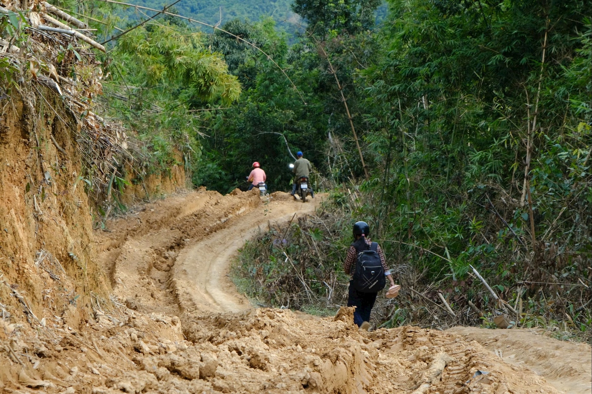 “Mùa nắng chạy xe ra thôn mất chừng nửa giờ đồng hồ, mùa mưa phải cả tiếng, xe quấn xích cũng té lên té xuống ở những đoạn dốc trơn như đổ mỡ. Chỉ đàn ông mới dám đi, phụ nữ không thể đi nổi”, Thào Văn Lý (20 tuổi) kể, vừa lau vội vệt bùn trên áo.