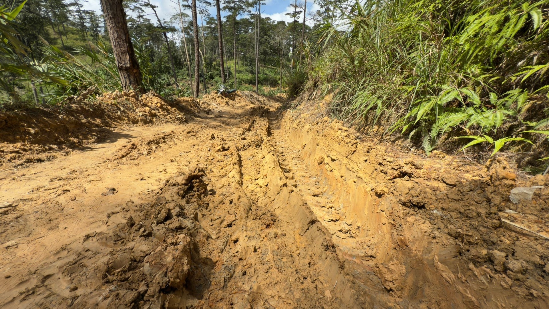 Con đường dài gần 12 km dẫn vào Tây Sơn, nắng lên, bụi phủ kín đường; mưa xuống lại hóa dòng sông bùn đặc quánh. Dù trời đã tạnh nhiều ngày nhưng trên dòng sông bùn ấy, có những đoạn vẫn lún sâu, ngập gần hết bánh xe máy cày. “Mùa mưa này, muốn ra trung tâm xã, ngoài đi máy cày, bà con chỉ còn cách lội bùn hơn 3 tiếng đồng hồ, không còn cách nào khác” anh Hoàng Seo Hồ (40 tuổi) nói, ánh mắt đầy bất lực.