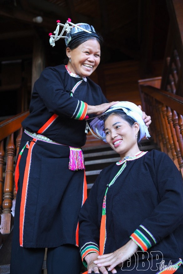 Nhưng “linh hồn” của bộ trang phục nằm ở chiếc khăn vấn đầu. Những người phụ nữ Sán Chỉ vấn tóc cao, đội một chiếc khăn trắng tinh, điểm xuyết một mảnh vải đen ở giữa và cố định bằng những chiếc trâm bạc, những phụ kiện tinh xảo. “Đây là điểm dễ nhận biết nhất của phụ nữ Sán Chỉ. Nhìn chiếc khăn là biết người Sán Chỉ, không lẫn đi đâu được” - anh Néng giải thích.