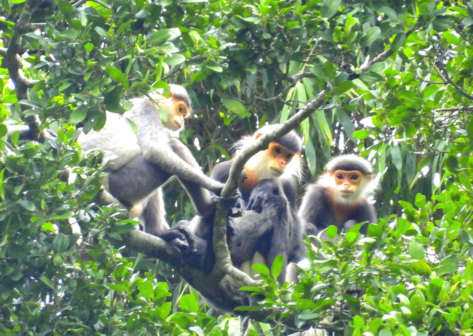 Một đàn voọc chà vá chân xám ở Tam Mỹ Tây. Ảnh: QUỐC TUẤN