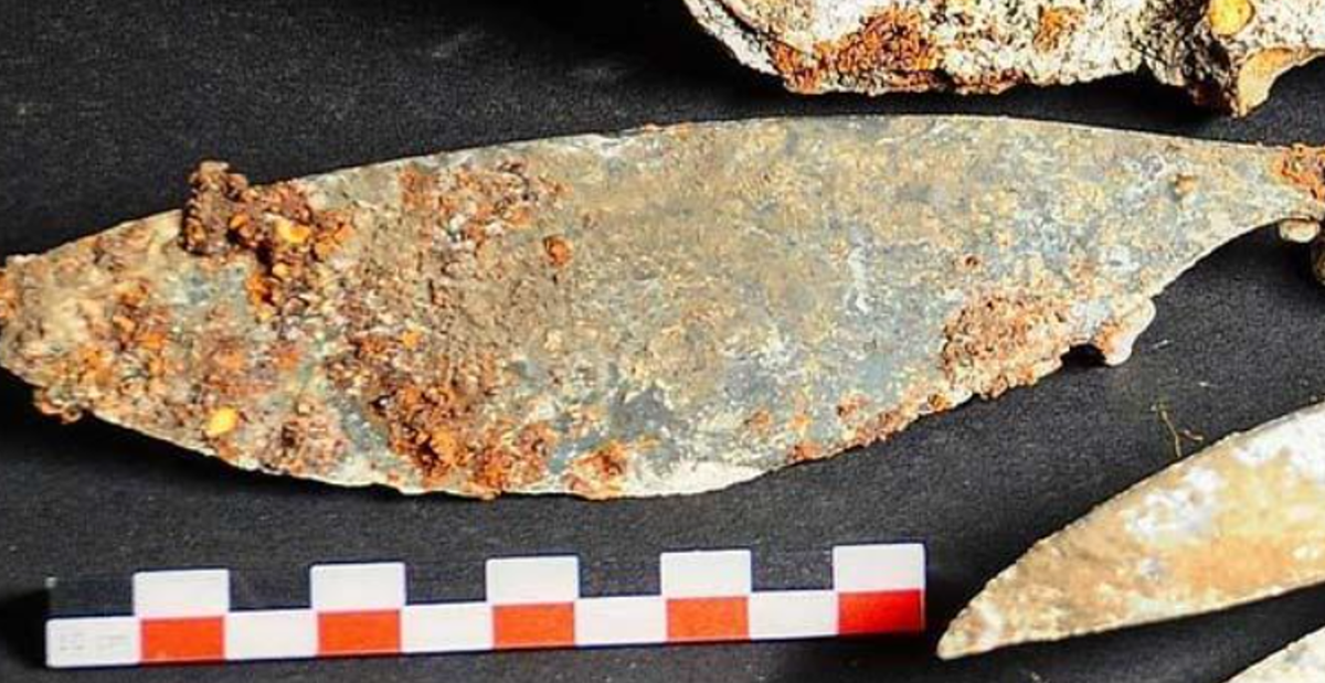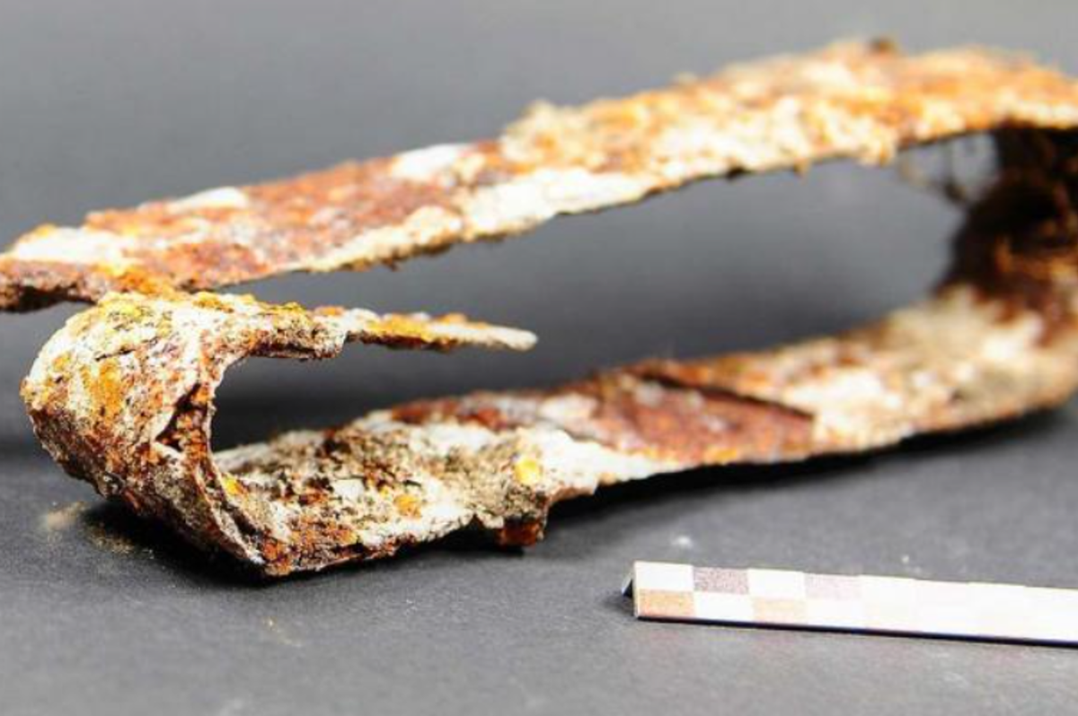 Bên trong ngôi mộ 2.300 năm tuổi của người Celt là một thanh kiếm gấp lại, một chiếc kéo được bảo quản tốt đến mức vẫn có thể sử dụng cho đến ngày nay. Ảnh: @Cơ quan Bảo vệ Di tích Bavaria.