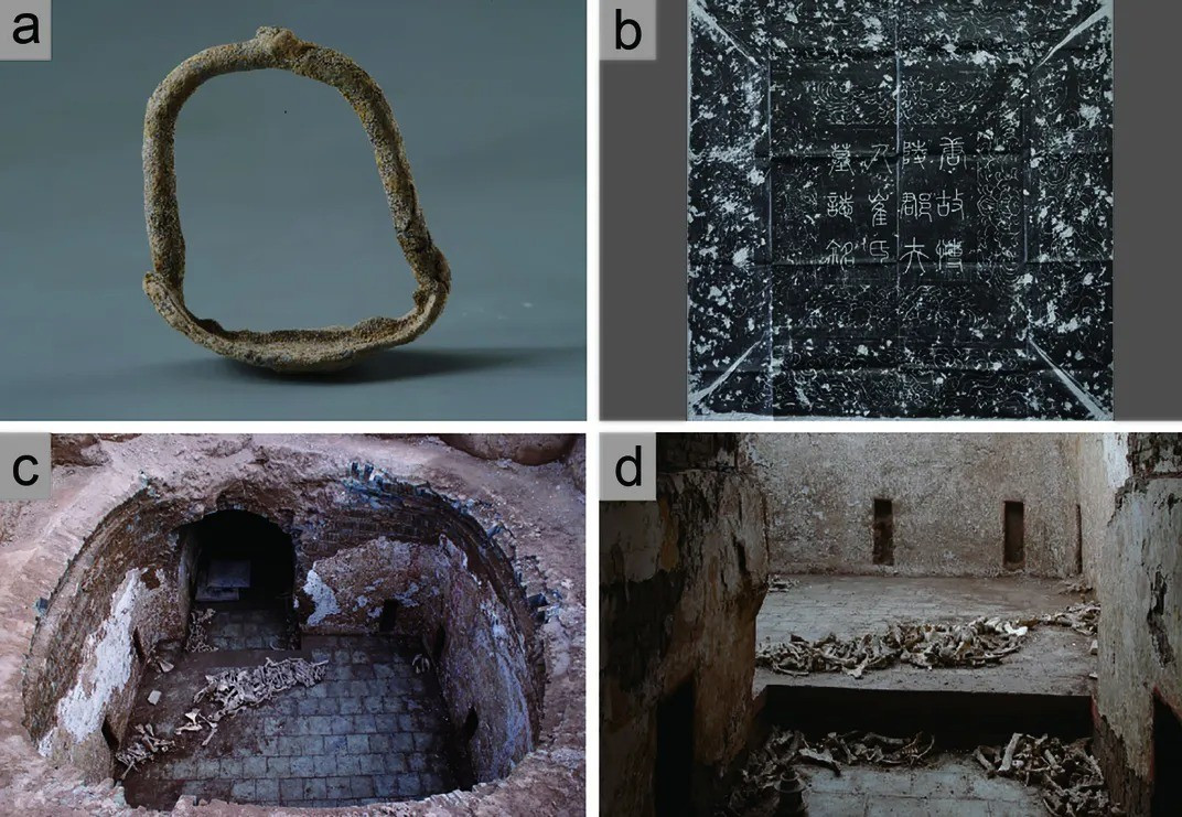 Vào năm 2012, các nhà khảo cổ tìm thấy ngôi mộ của Cui Shi - nữ quý tộc nhà Đường tại Tây An, Trung Quốc. Trong mộ của nữ quý tộc này, họ còn tìm thấy xương lừa. Ảnh: Songmei Hu/Antiquity.