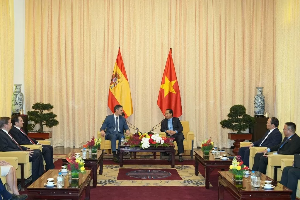 Phó Chủ tịch UBND TP.HCM Bùi Xuân Cường bày tỏ tin tưởng chuyến thăm của Thủ tướng Tây Ban Nha và phái đoàn doanh nghiệp sẽ mở ra chương mới trong hợp tác thương mại và đầu tư. Ông nhấn mạnh tiềm năng của Tây Ban Nha - nền kinh tế lớn thứ tư Liên minh châu Âu (EU), Việt Nam - một trong 15 nền kinh tế lớn nhất châu Á với TP. Hồ Chí Minh là đầu tàu.