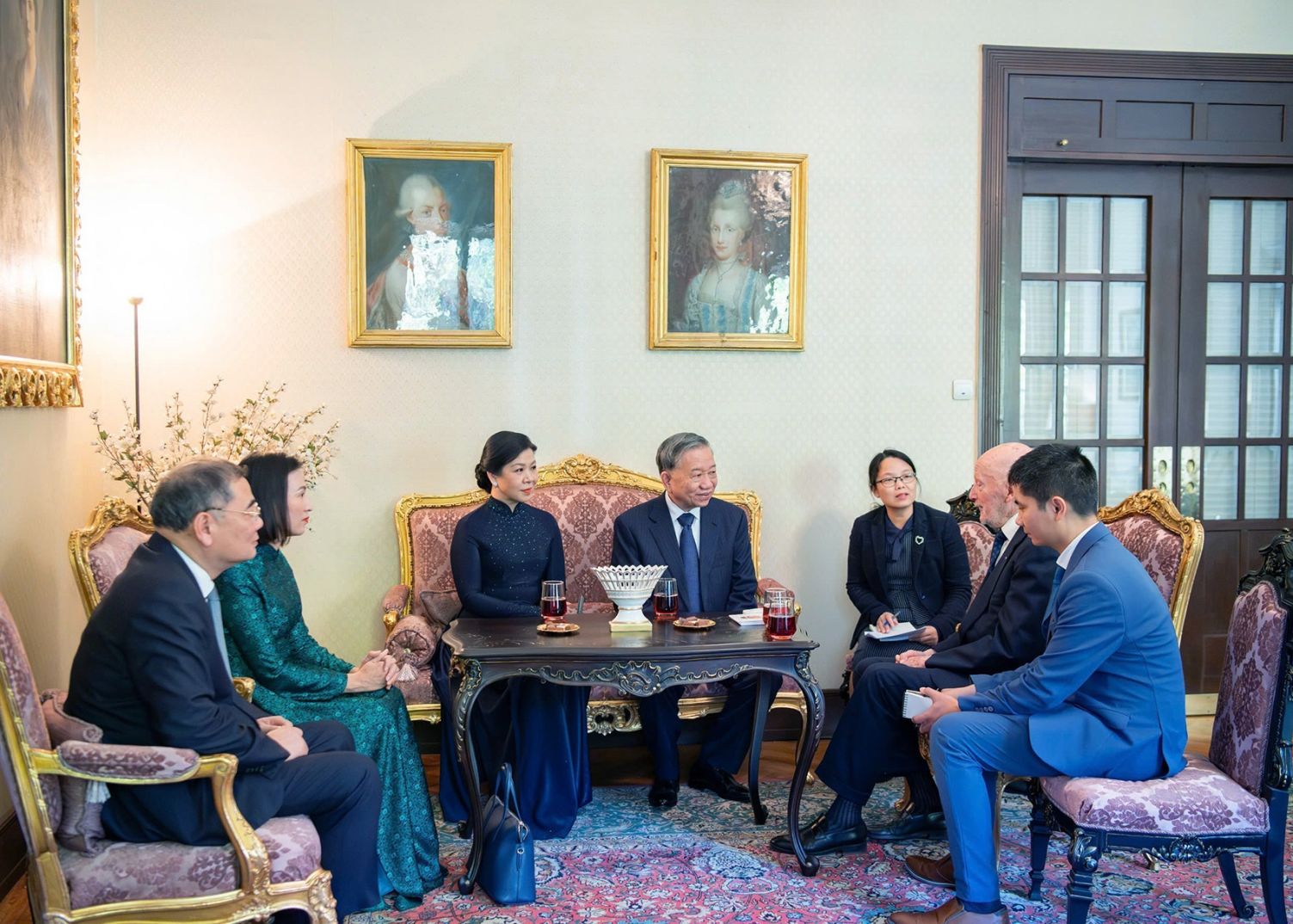 Tổng Bí thư Tô Lâm và Phu nhân gặp Cựu hoàng Simeon Saxe-Coburg-Gotha. (Ảnh: TTXVN)