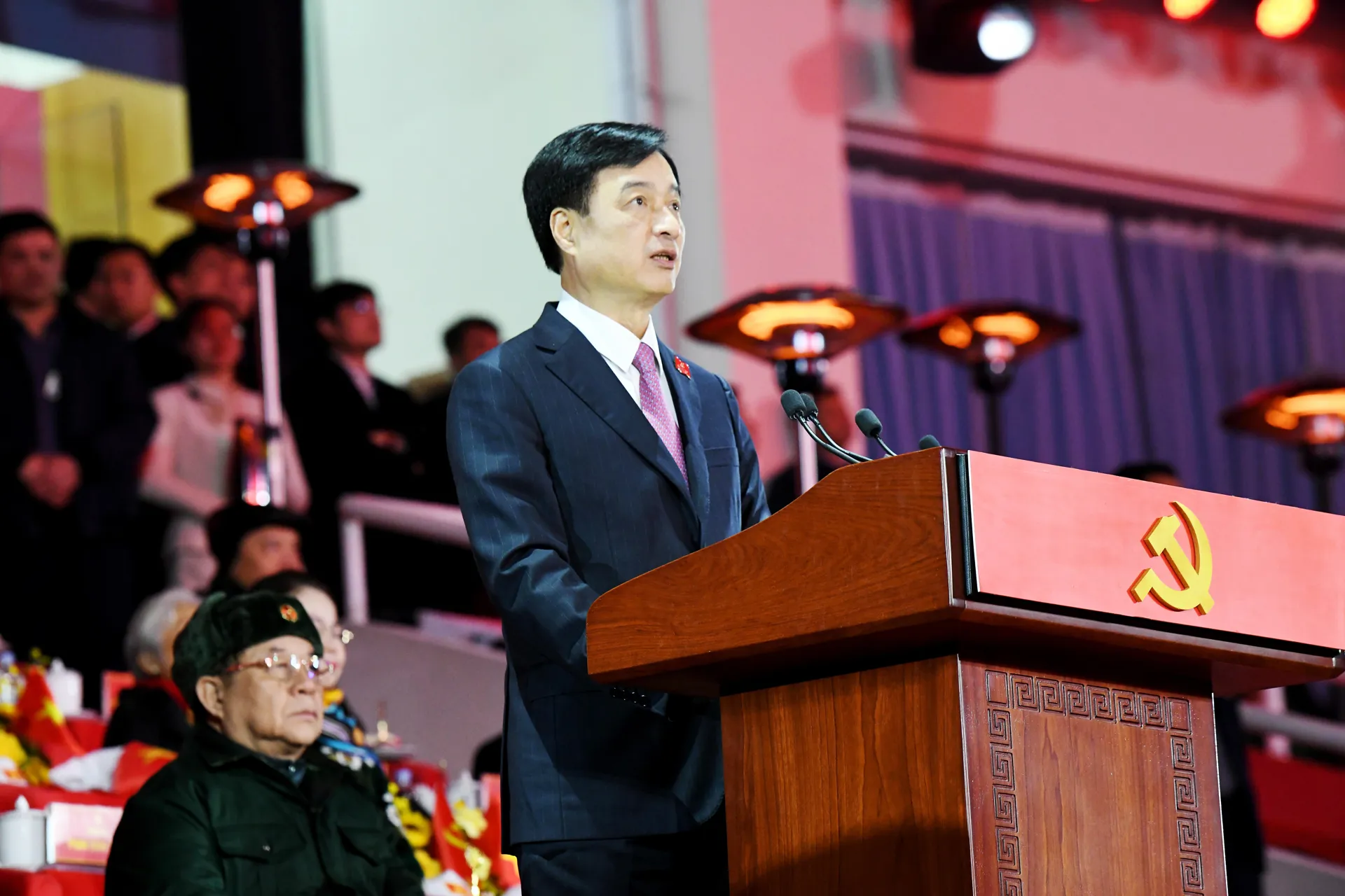 Phát biểu tại chương trình, Bí thư Thành ủy Hà Nội Nguyễn Duy Ngọc cho biết, trong không khí tràn ngập niềm vui và niềm tự hào của cả nước, tối nay, Thủ đô Hà Nội ngàn năm văn hiến vô cùng vinh dự được thay mặt các cấp ủy Đảng, chính quyền và Nhân dân cả nước tổ chức chương trình nghệ thuật đặc biệt "Dưới lá cờ vẻ vang của Đảng", chào mừng thành công rất tốt đẹp của Đại hội đại biểu toàn quốc lần thứ XIV và kỷ niệm 96 năm ngày thành lập Đảng Cộng sản Việt Nam quang vinh (3/2/1930 - 3/2/2026).
