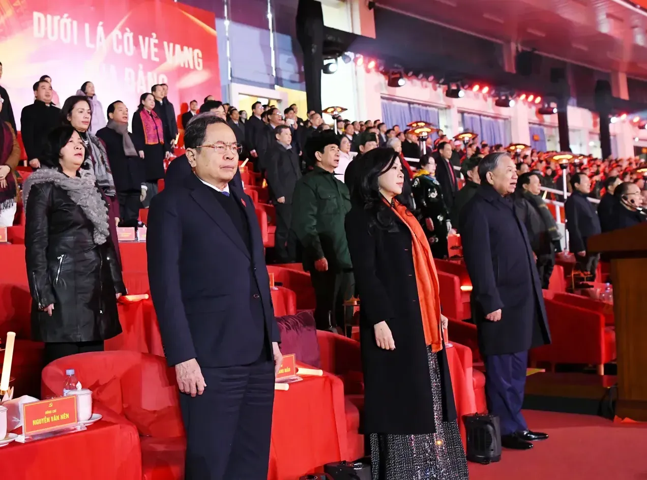 Cùng tham dự chương trình còn có các đồng chí Ủy viên Bộ Chính trị và nguyên Ủy viên Bộ Chính trị; các đồng chí Bí thư Trung ương Đảng và nguyên Bí thư Trung ương Đảng; các đồng chí Ủy viên Trung ương Đảng, nguyên Ủy viên Trung ương Đảng; lãnh đạo, nguyên lãnh đạo Quốc hội, Chính phủ, Ủy ban Trung ương MTTQ Việt Nam. Đến tham dự chương trình còn có sự hiện diện của các đại biểu tham dự Đại hội đại biểu toàn quốc lần thứ XIV của Đảng.