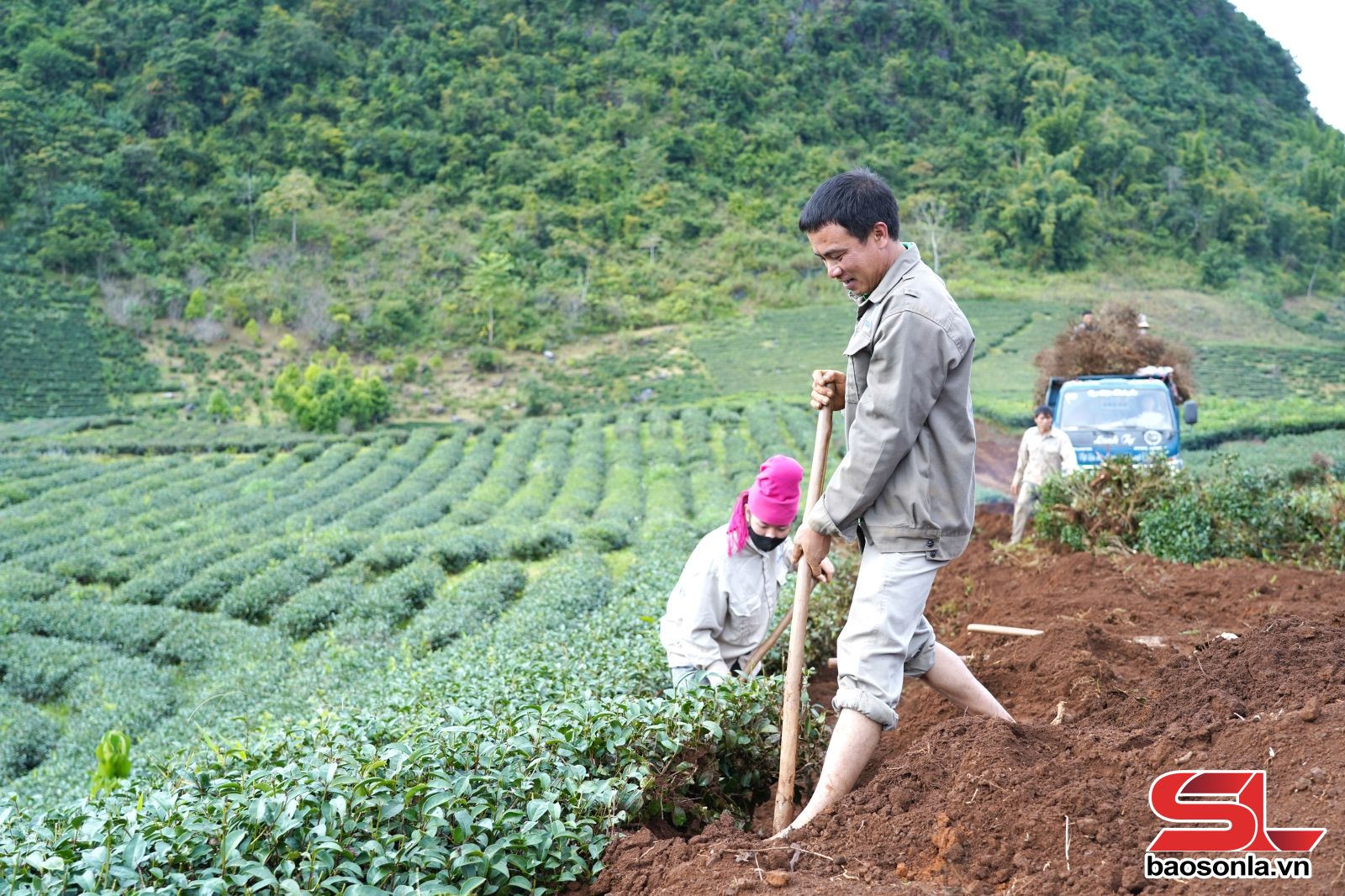 Nông dân bản Đông Quan chặt bỏ chè, nhường đất mở rộng đường.