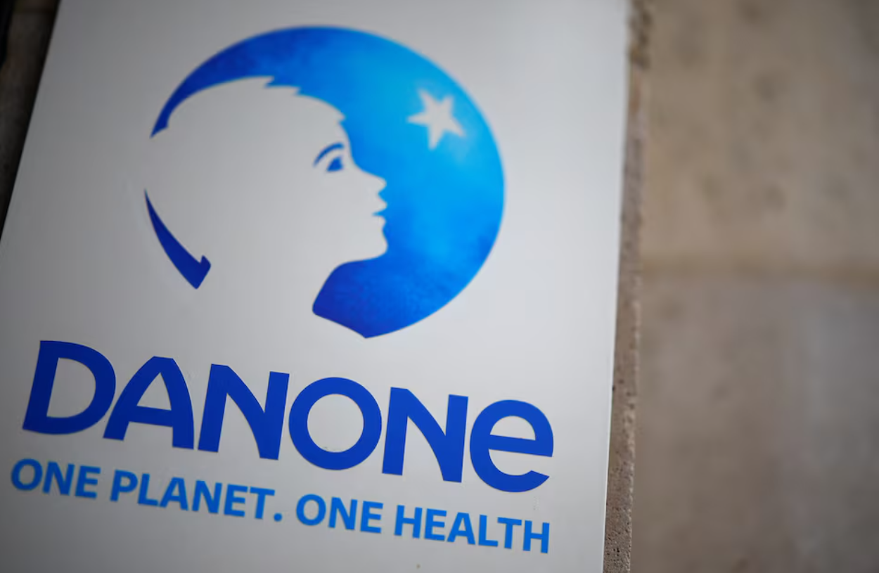 Logo của tập đoàn thực phẩm Pháp Danone tại trụ sở chính của công ty ở Paris, Pháp. Ảnh: REUTERS