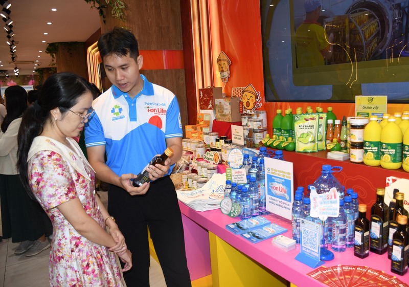 Hơn 60 doanh nghiệp tiêu biểu của TP. Hồ Chí Minh tham gia trưng bày, giới thiệu sản phẩm lương thực, thực phẩm đa dạng tại Tuần lễ. Ảnh: Minh Khuê.