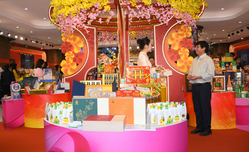 Khách tham quan có thể chiêm ngưỡng những sản phẩm đặc trưng ngày Tết, các gói quà tràn đầy ý nghĩa tại sự kiện. Ảnh: Minh Khuê.