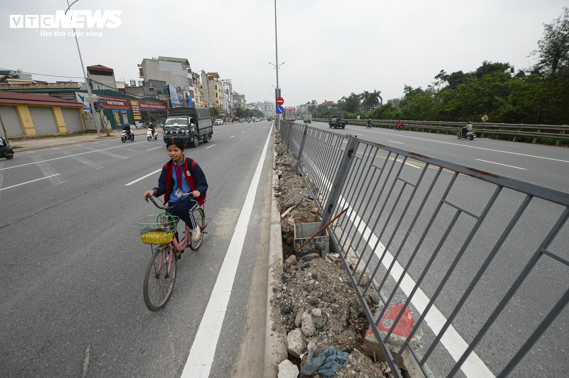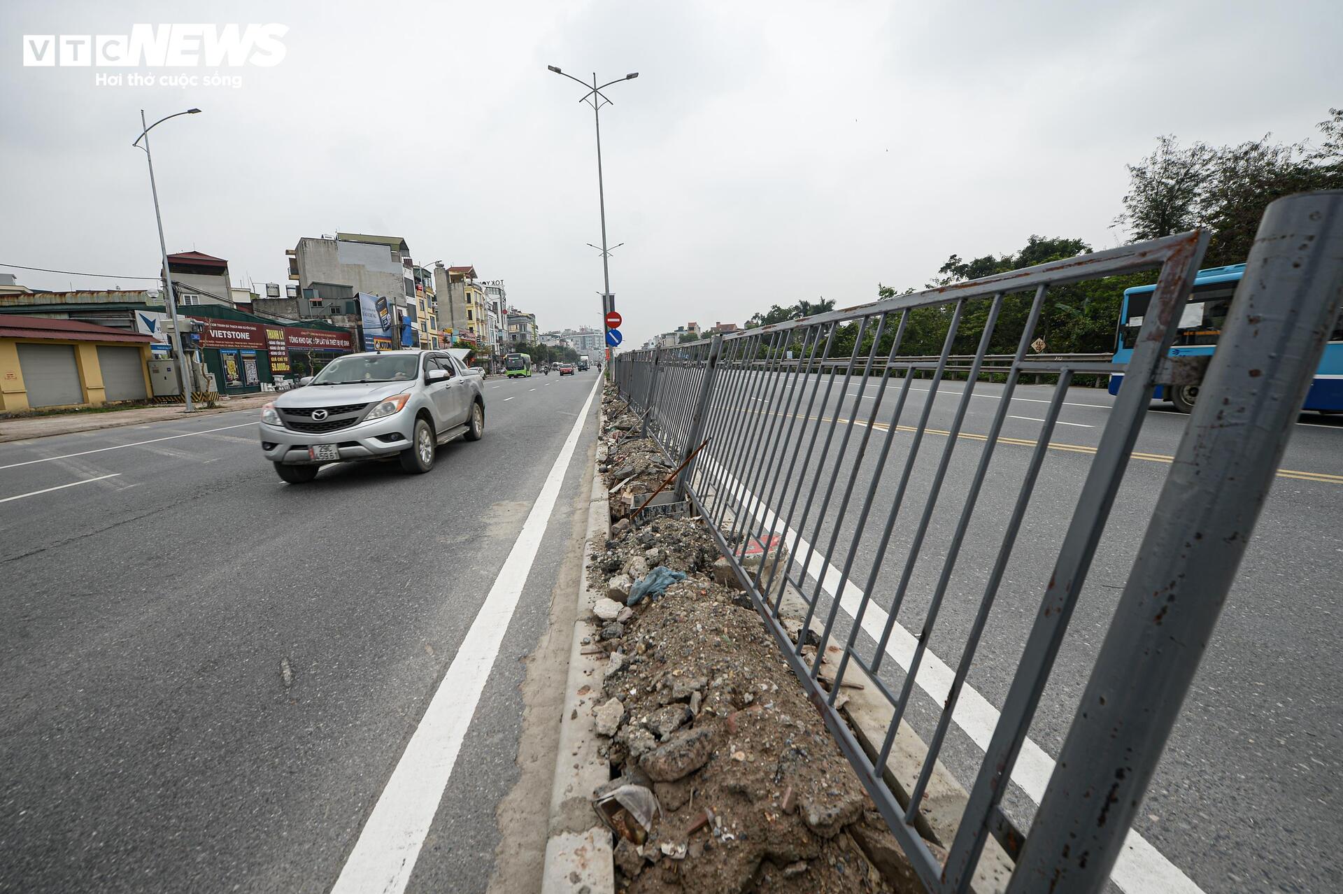 Tuy nhiên, sau hơn một tháng đưa vào khai thác, nhiều hạng mục trên tuyến đường vẫn trong tình trạng thi công dang dở. Vỉa hè ở nhiều đoạn còn ngổn ngang vật liệu. Về hệ thống dải phân cách giữa mới được lắp đặt tạm bằng hàng rào sắt, một số vị trí đã bị xô lệch, tiềm ẩn nguy cơ mất an toàn giao thông.