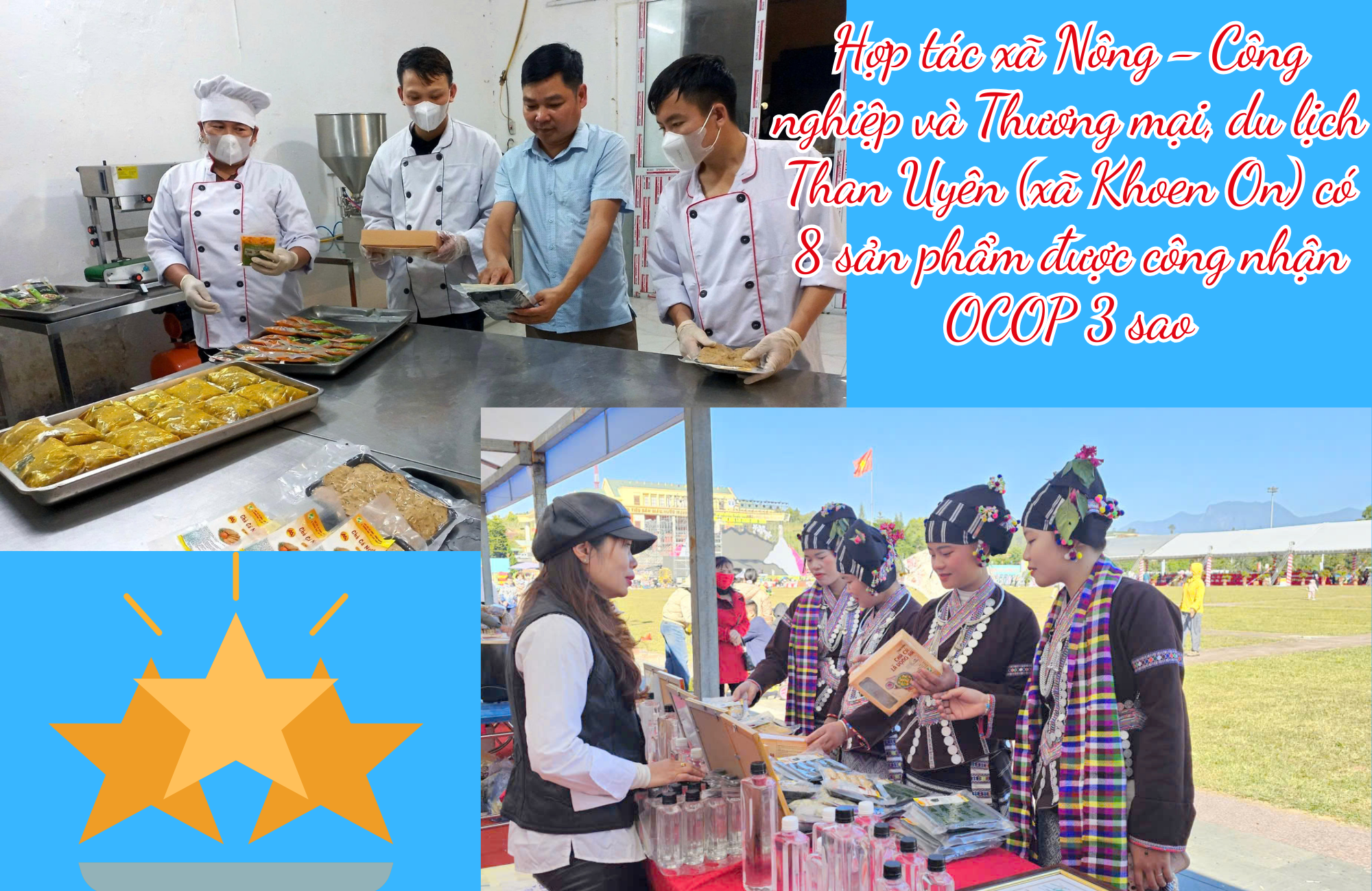 Hợp tác xã (HTX) Nông - Công nghiệp và Thương mại, du lịch Than Uyên (xã Khoen On) hiện có 8 sản phẩm được công nhận đạt tiêu chuẩn OCOP 3 sao, gồm: cá lăng cắt khúc AA, chả cá lăng viên, ruốc cá lăng, nước cốt lẩu cá AA, tôm tươi Ta Gia… Nhờ chú trọng đầu tư nâng cao chất lượng sản phẩm, hoàn thiện mẫu mã, bao bì và xây dựng hệ thống phân phối, các sản phẩm của HTX hiện được tiêu thụ tại nhiều tỉnh, thành phố như: Hà Nội, Hải Phòng, Quảng Ninh, Bắc Ninh, Thanh Hóa và Thành phố Hồ Chí Minh thông qua các hệ thống siêu thị, chuỗi phân phối uy tín như: Vinmart, Big C, Metro, Hapromart, Co.opmart, Fujimart… được người tiêu dùng tin tưởng, đánh giá cao.
