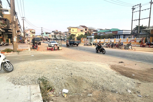 Lòng, lề đường Nguyễn Gia Thiều, đoạn qua cây xăng trước chợ đầu mối Phú Hậu thi công dang dở.