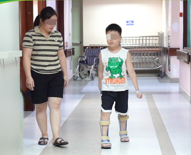 Bé N.P đã đeo nẹp, tập luyện phục hồi chức năng không ngừng nghỉ suốt 7 năm qua. Ca phẫu thuật này là bước ngoặt lớn đối với bệnh nhi. Chỉ sau vài tuần, tình trạng co cứng giảm rõ rệt,bé N.P có thể tự đứng, tự đi lại – điều mà trước đây gia đình chỉ dám mơ ước.