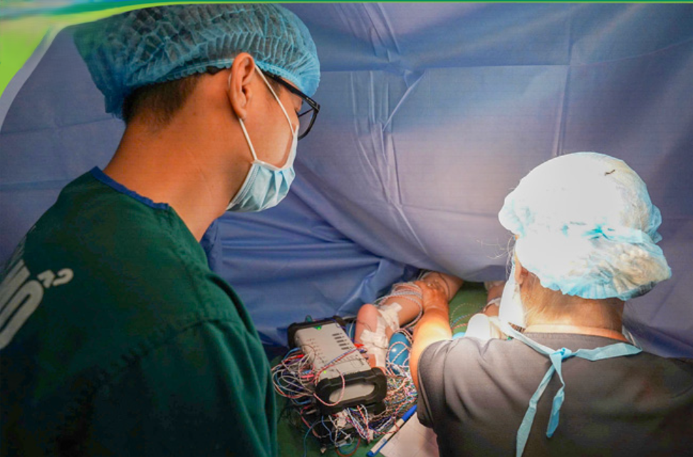 Một trong những bước đi quan trọng là đào tạo nhân lực. Năm 2024, các bác sĩ Trung tâm Thần kinh đã tham gia khóa đào tạo chuyên sâu về phẫu thuật cắt rễ thần kinh lưng chọn lọc dưới sự hướng dẫn của điện sinh lý thần kinh tại Bệnh viện Trẻ em Alabama (Hoa Kỳ). Nhờ những sự chuẩn bị bài bản này, các bác sĩ đã sẵn sàng về chuyên môn, kỹ thuật và tự tin bước vào ca phẫu thuật đầu tiên.