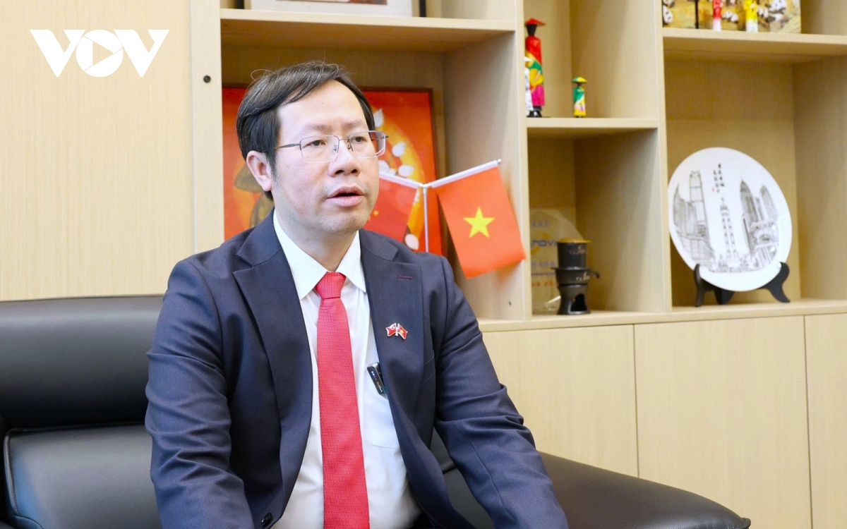 Trả lời phỏng vấn của phóng viên Đài TNVN, Tổng Lãnh sự Việt Nam tại Trùng Khánh (Trung Quốc) Bùi Nguyên Long khẳng định quyết tâm tăng cường kết nối địa phương - doanh nghiệp, thúc đẩy giao lưu nhân dân, đóng góp xung lực mới cho hợp tác song phương.
