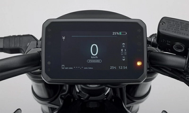 Màn hình TFT màu 5 inch hiển thị đầy đủ thông số vận hành, mức pin và góc nghiêng, đồng thời hỗ trợ kết nối smartphone thông qua ứng dụng Honda RoadSync.
