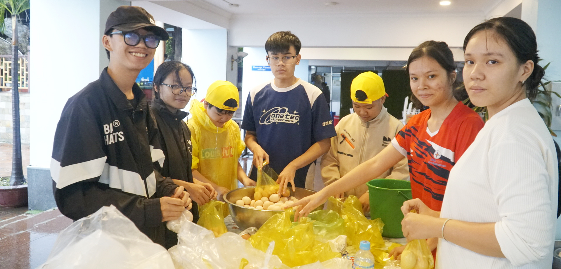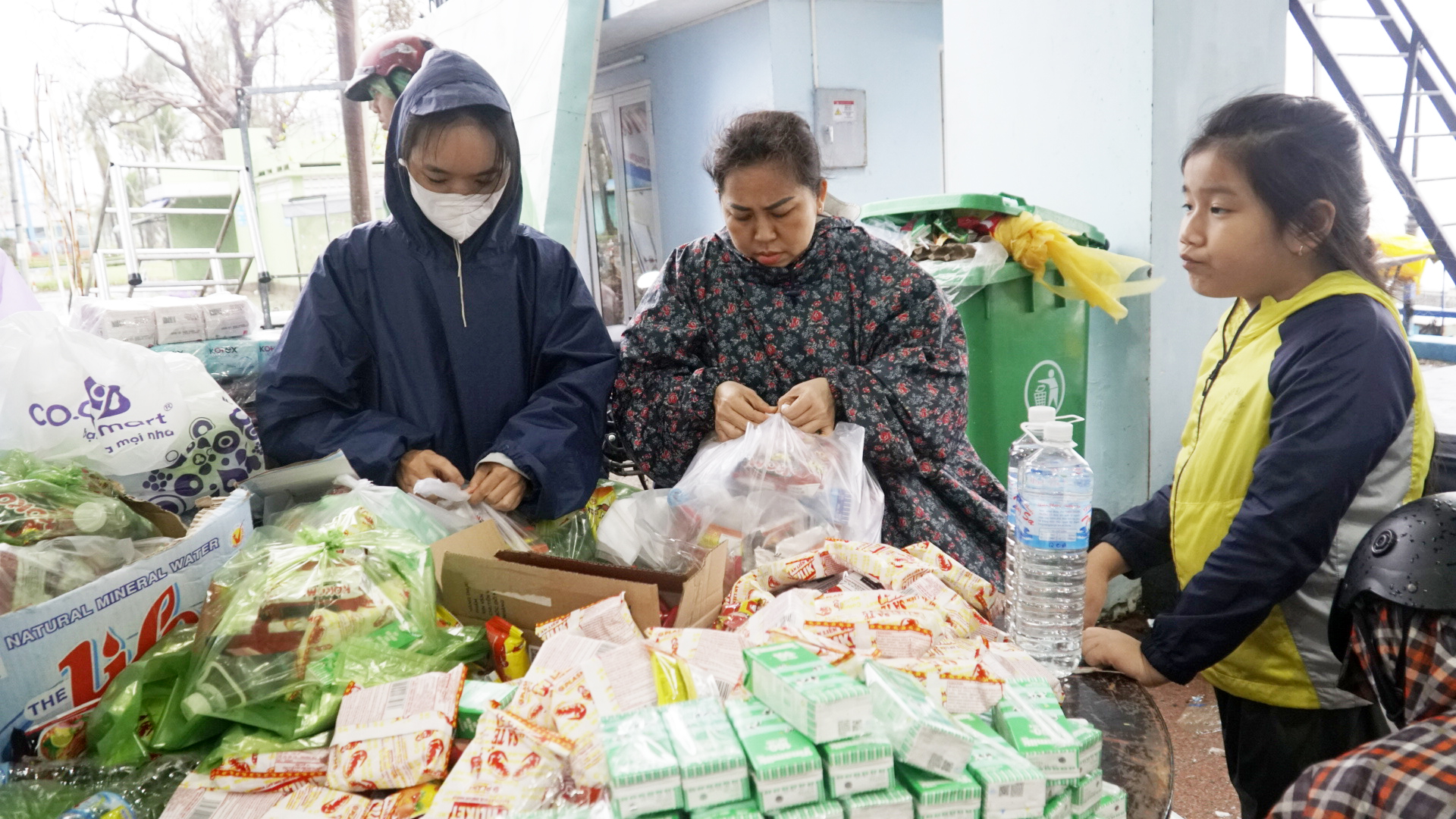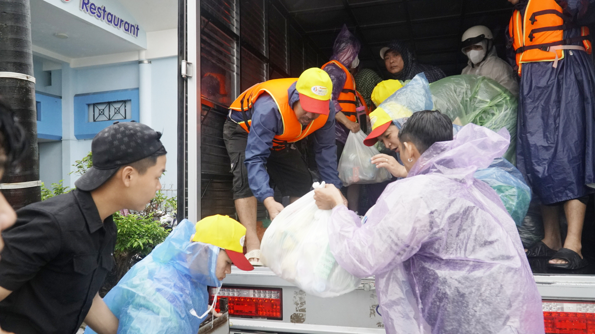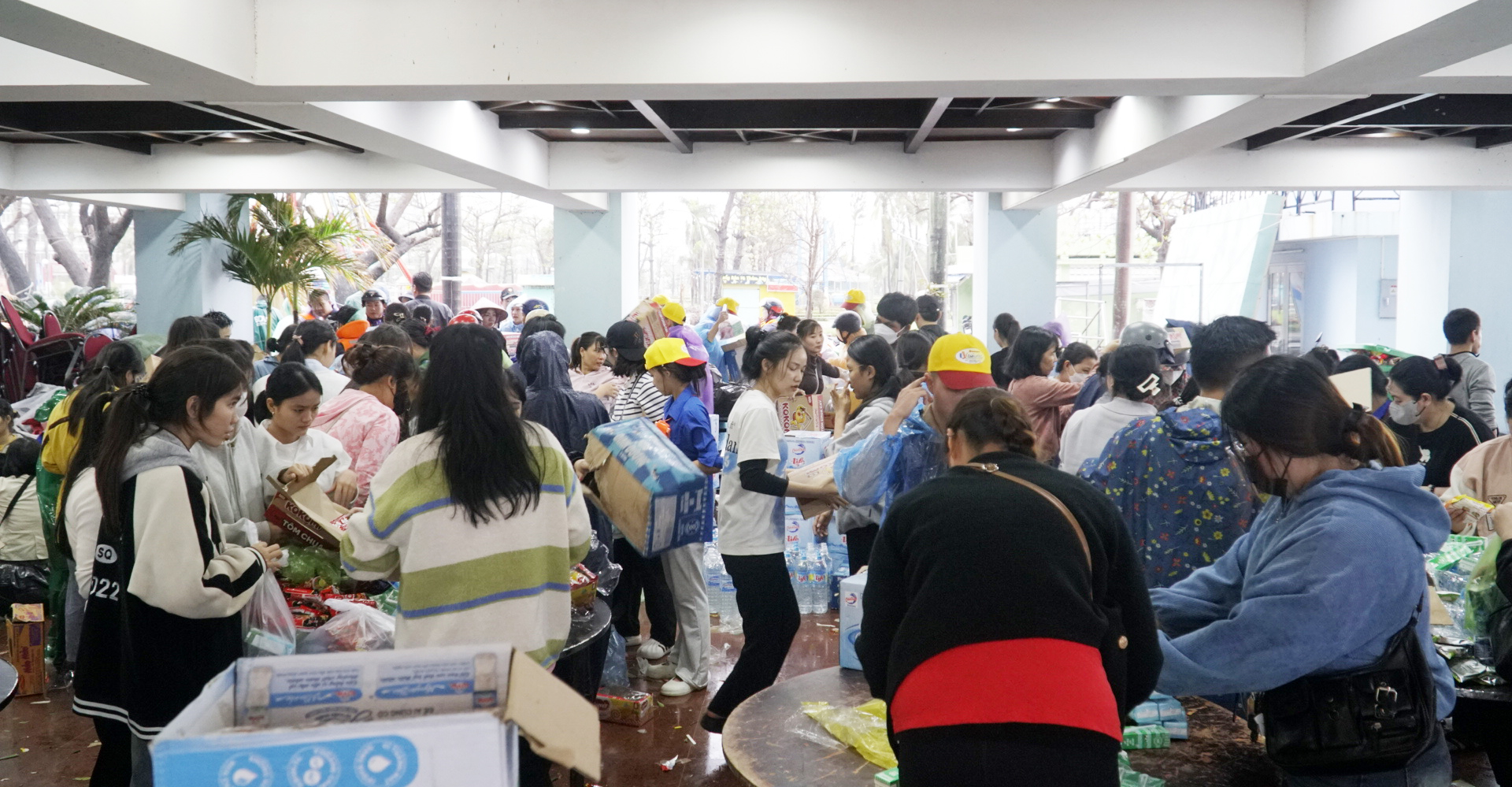 Trạm tiếp nhận cứu trợ vùng lụt ven Quy Nhơn đặt tại Công viên Long Vân