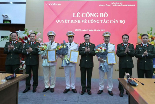 Theo đó, căn cứ Quyết định của Bộ trưởng Bộ Công an về việc ban hành Điều lệ tổ chức và hoạt động của Công ty mẹ - Tổng công ty Viễn thông MobiFone; căn cứ Công văn của Cục Tổ chức cán bộ, Bộ Công an thông báo chủ trương của lãnh đạo Bộ về sắp xếp, bố trí nhân sự Hội đồng thành viên, Ban Tổng giám đốc Tổng công ty Viễn thông MobiFone, chiều 1/12/2025, Tổng công ty Viễn thông đã tổ chức lễ thông báo Quyết định của Bộ trưởng Bộ Công an bố trí đồng chí Trương Sơn Lâm làm Chủ tịch Tổng công ty; công bố Quyết định của Chủ tịch Tổng công ty bố trí đồng chí Đại tá Tô Mạnh Cường, tiếp tục giữ chức vụ Tổng giám đốc Tổng công ty; các đồng chí Thượng tá Nguyễn Thành Công và Thượng tá Lê Cảnh Duy giữ chức vụ Phó Tổng giám đốc Tổng công ty.