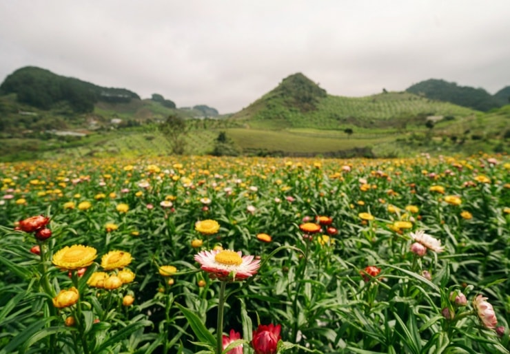 Mộc Châu (Sơn La) tiếp tục khẳng định sức hút của một thủ phủ du lịch vùng cao với sự xuất hiện của đồi hoa bất tử rộng khoảng 4.000 m2. Đây là điểm đến mới lạ, mang đến sắc thái khác biệt so với những mùa hoa đào, hoa mận truyền thống, thu hút đông đảo du khách ghé thăm ngay từ những ngày đầu năm mới.