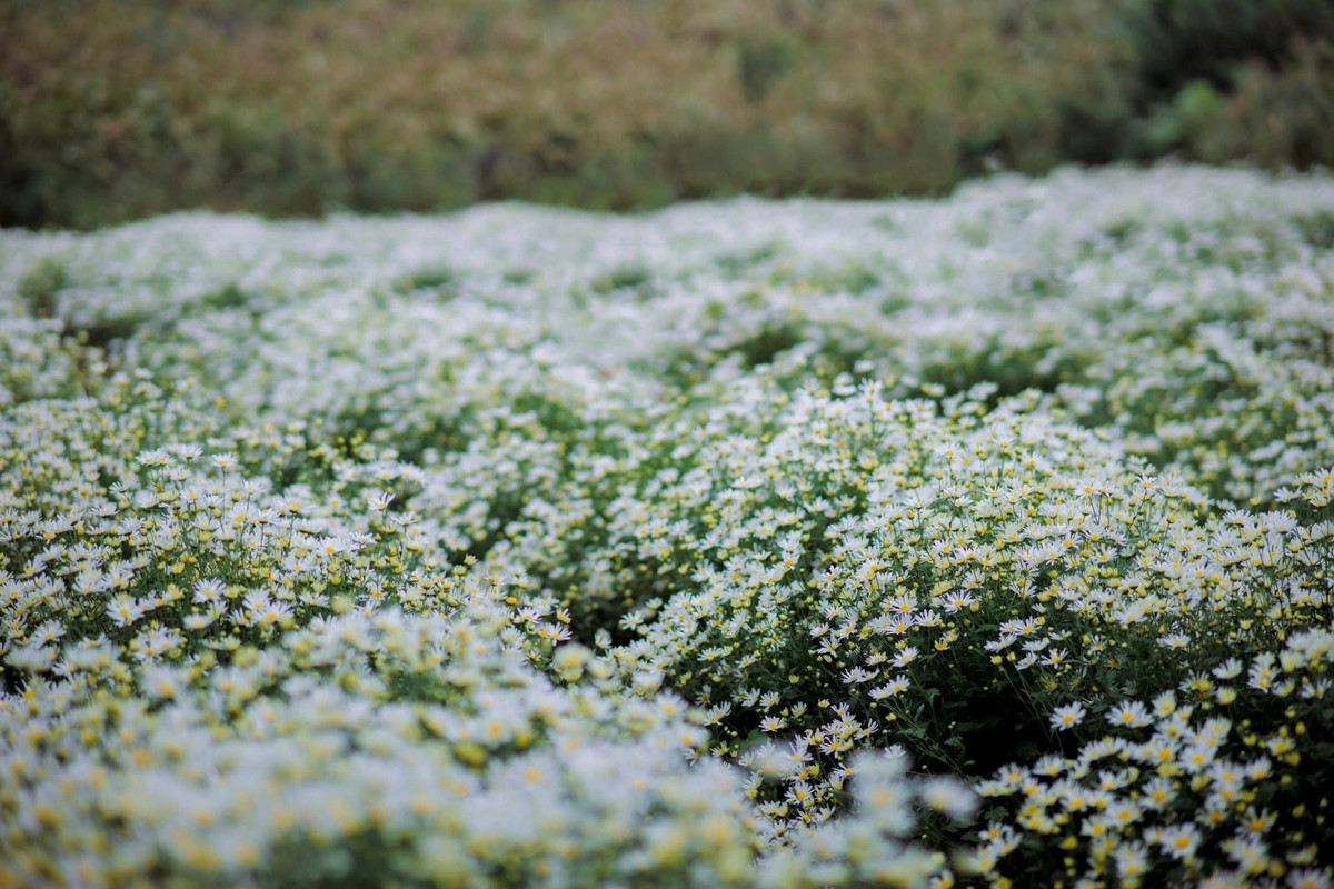 Tháng 12, khi sương lạnh bắt đầu phủ xuống các triền đồi và những đợt gió mùa len lỏi qua thung lũng Tây Bắc, Mộc Châu (Sơn La) bỗng trở nên mềm mại lạ thường bởi sự xuất hiện của những cánh đồng cúc họa mi trắng tinh khôi. Ảnh Lương Thế Anh