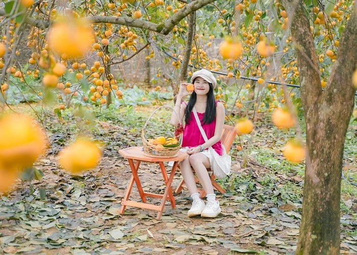 Du khách có thể kết hợp hái hồng, thưởng thức hồng giòn tại vườn và chụp ảnh giữa khung cảnh đầy sắc màu. Nhiều vườn mở cửa tự do hoặc thu phí tượng trưng từ 20.000 – 30.000 đồng/lượt. Ảnh Phương Tali