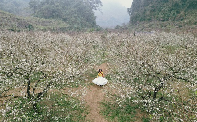 Thung lũng Mộc Châu như được dệt bằng dải lụa trắng ngần từ hàng nghìn héc ta hoa mận.