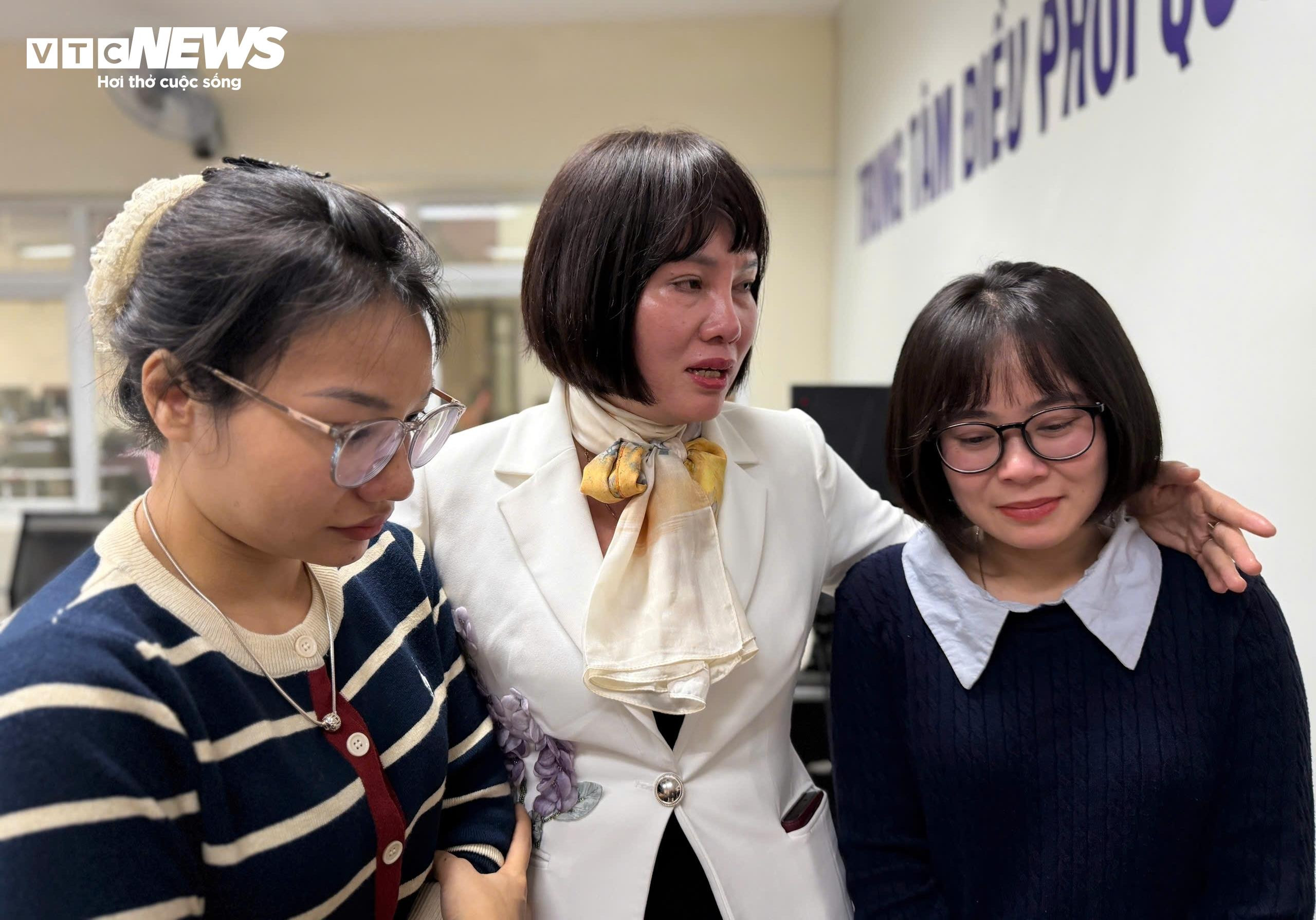 Chị Hiền (phải) xúc động khi gặp lại thành viên tổ tư vấn hiến tạng Bệnh viện Đa khoa Xanh Pôn. (Ảnh: Như Loan)